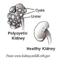 meaning that one copy of the relevant gene received from the parents was mutant and the other copy was normal. The sufferers who inherit the mutated gene may die of kidney failure by late middle age if they don't receive dialysis or a kidney transplant. As the disease progresses, the kidneys are gradually replaced by functionless cysts, which can cause continuous pain and enlarge the kidneys to the point where they bleed, get infections, and may even interfere with breathing.