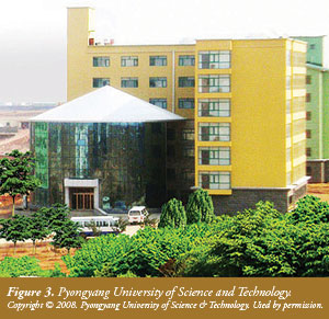 The $35 million, 240-acre campus includes a faculty guesthouse, world-class dormitories, a cafeteria, and classrooms. Laboratory equipment and computers are still limited in the school. But students and faculty rely heavily on computers to scan the Internet to do their research in place of laboratories. Classes are taught in English, and Internet access is available to all students, although it is censored. The school has its own backup generators, but fuel has to be trucked in from neighboring China because so little diesel and gasoline is available in the North.2,3