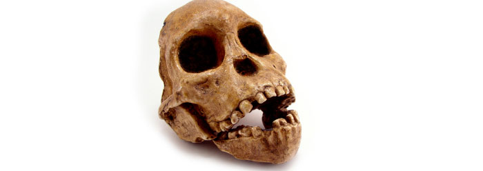 Lucy's skeleton was about 40% complete and was a remarkable discovery when unearthed by Don Johanson in 1974. The creature would have stood 3.5 feet tall, about the height of a chimpanzee. Its skull was grossly ape-like, and also about the size of a chimp's, with very little in the way of human-like features. Lucy possessed very long fingers with a decided curve to them, like modern apes possess for tree-swinging activities. From other A. afarensis finds, it is believed Lucy possessed long toes with a curvature that also suggested prehensile and arboreal behavior. Lucy's upright-turned shoulder joint enabled suspensory behavior and her hands, wrists, and arms were powerfully prehensile. And so you ask, what makes Lucy such a great missing link? Angles of bones in the (reconstructed) hip joint and knee joint suggest that Lucy spent part of her time walking upright. That is as strong as the evidence gets that she was related to humans. Virtually no anatomists will support Johanson's claim that Lucy was a habitual upright walker, yet this is what most textbooks boast.