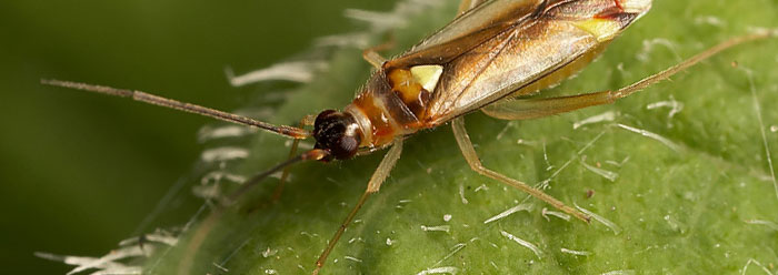Mirid bugs are integral to the cross-pollination of their flypaper plants. These woody plants, named Roridula gorgoneus, have specially-designed flowers that the mirid bug’s needle-shaped mouthpart activates. “One species [of mirid bug] for each Roridula species, pierce and feed from the anther.…The piercing causes the anthers to spring up through 180°, dusting the insects with pollen.”3
