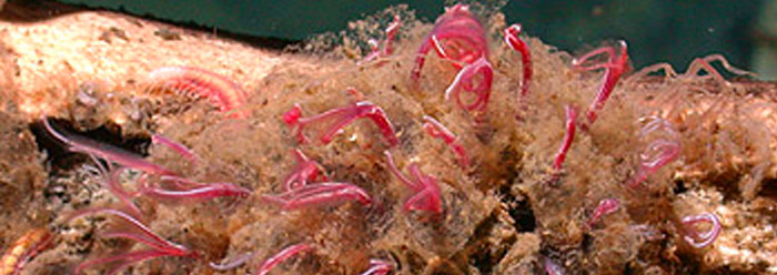 The worms have no mouth or gut, but each has a set of roots that secrete a mucilaginous "home" colonized by symbiotic bacteria. The detailed interactions between the worms and bacteria are not fully understood, but evolutionary biologist Robert Vrijenhoek, who first discovered the Osedax worms and has remained involved in the research, told the San Francisco Chronicle, "The worm's roots are packed with bacteria. We know that the worms derive some of their nutrition by digesting the bacteria."1
