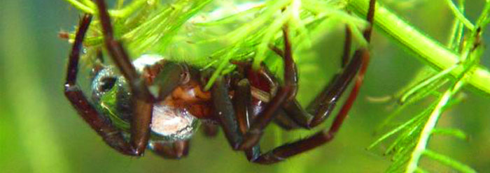 But it turns out that certain spiders had been master divers long before Cousteau. The diving bell spider is able to attach an air bubble to its abdomen and use it underwater for gas exchange. A LiveScience article described how these unique arachnids build underwater webs in ponds and then stock them with a pocket of air.1 A recent study found that the spiders could stay underwater "for more than a day," which surprised the researchers.2
