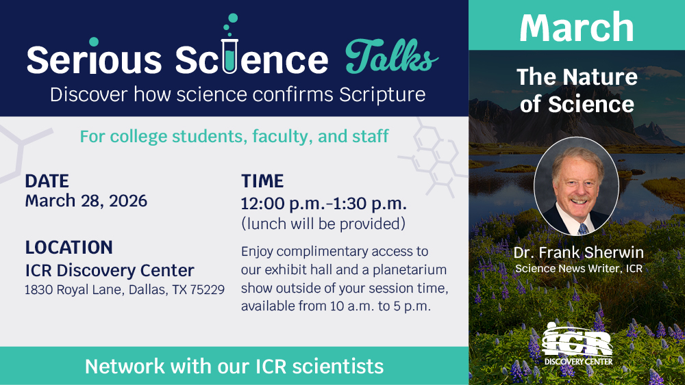 Join ICR's Dr. Jake Hebert as part of the Chicago Area Speaking Tour sponsored by Midwest Creation Fellowship as he speaks at MCF's North Chapter Meeting on the evening of Monday, August 10th, 2026.