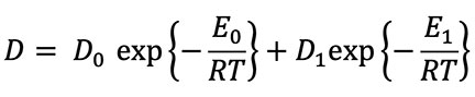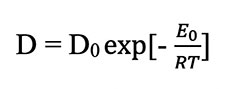 where D0 is a constant independent of temperature, E0 is the intrinsic activation energy characteristic of the material in which diffusion is occurring (in this case a zircon crystal), and R is the universal gas constant. If the crystal has defects such as vacancies in the crystal lattice, dislocations, impurities, damage from radiation, or grain boundaries, then the basic equation is modified to: