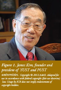 And then an incredible event occurred in 2001,when North Korea gave approval for Kim to build a technical university in North Korea similar to YUST. The new university, Pyongyang University of Science and Technology (PUST), was dedicated on September 16, 2009, and began offering classes in October 2010. Kim was appointed president of the new university.1 The first group of 160 undergraduate and master’s students was chosen by the North Korean government, selected from the top North Korean colleges, and chosen from political and military sponsors. The university currently has about 275 students and eventually plans to have a student body of about 2,500 and a faculty of 250, with classes in public health, architecture, agriculture and life sciences, electrical and computer engineering, and construction engineering.