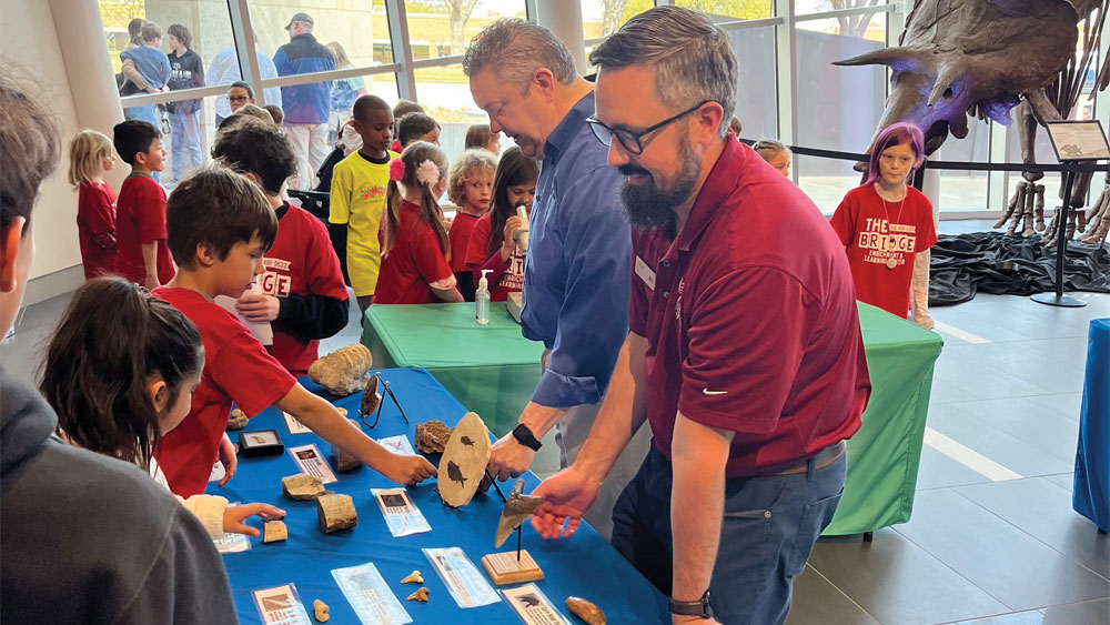 Top image: Events team members Dave Napier (left) and Joel Kautt talk with students at the ICR Discovery Center.