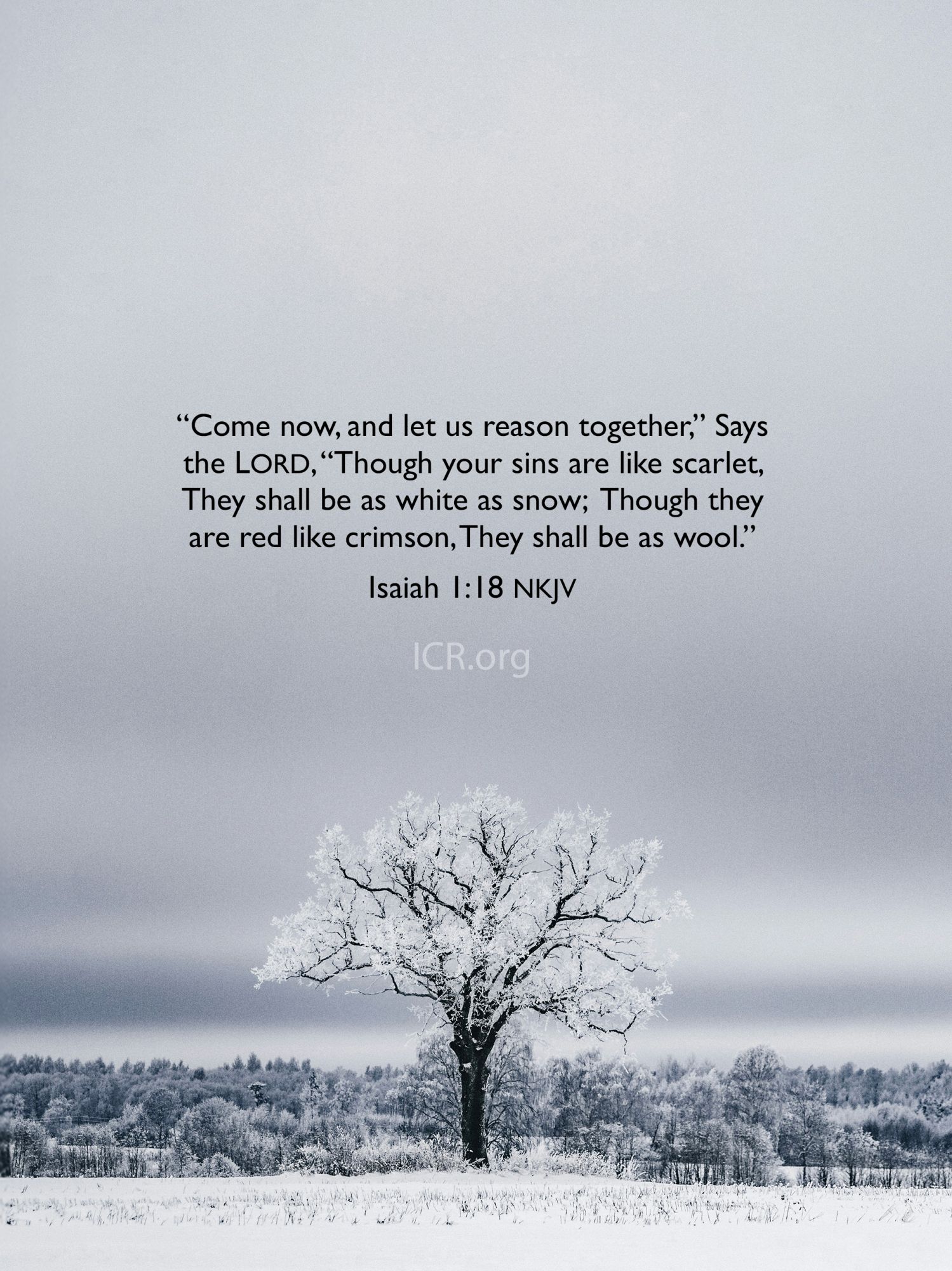 "Come now, and let us reason together," Says the LORD, "Though your sins are like scarlet, They shall be as white as snow; Though they are red like crimson, They shall be as wool." (Isaiah 1:18 NKJV)