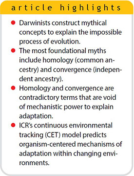 These concepts directly contradict one another. For instance, conventional science suggests that the bones forming the structure of wings in birds and bats are homologous while the wings themselves are convergent. Really? No! Evolutionary concepts are highly flexible fabrications of the human mind, intended to replace the true origin and diversification of all biodiversity on Earth.