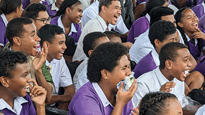 The Lord wove together separate life stories into this one wonderful mission. First, a native Fijian whom mission team members call Sister Lagi (pronounced “lawn-gee”) retired from a government administrative role where she knew every high school principal in the country. Sister Lagi then asked the Lord what else He had for her to do. She soon learned about school assemblies that would show how science supports the gospel, and she knew this was “it.” Sister Lagi became the key to unlocking this unique ministry.