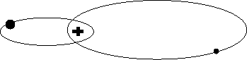| Figure 1 A star (large dot) and planet (small dot) both move around their center of gravity or balance point (+). |