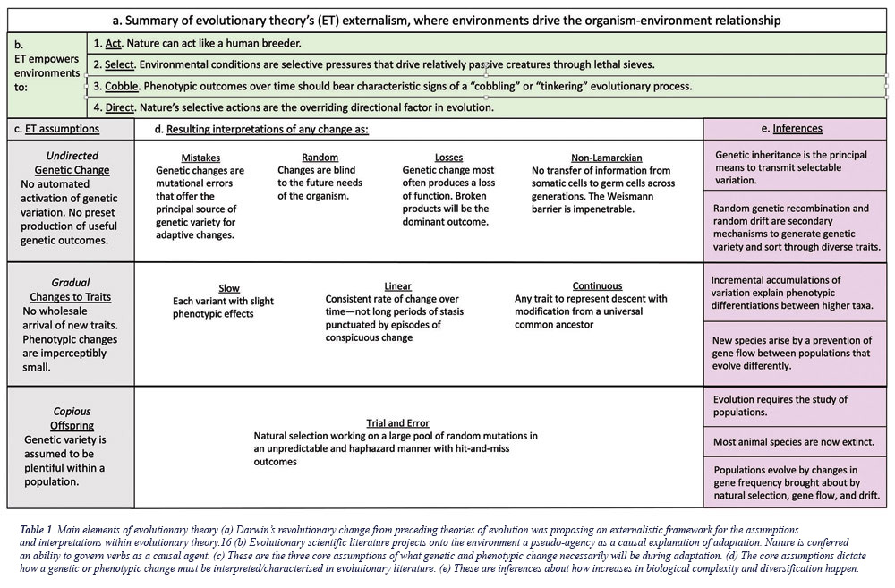 The personification of nature strips God of His creative agency, and externalism rids creatures of their agency as the causative entity in adaptation. Darwin’s bold, counterintuitive perceptions of personifying nature and pacifying creatures are the way selectionists view living things. Evolutionary biologists didn’t rid biology of a creative agent; they just transferred it to nature.