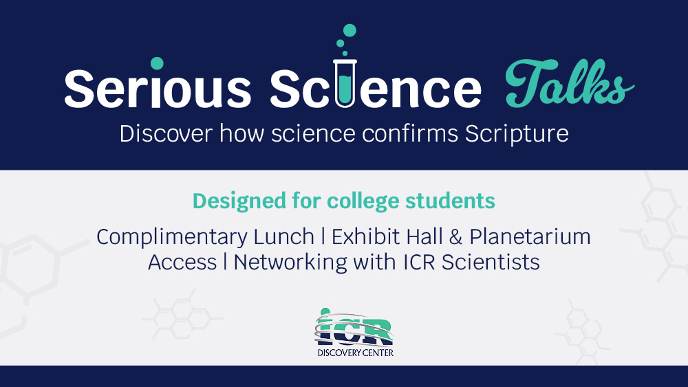 Serious Science Talks is a series at the ICR Discovery Center created for college students, faculty, and staff who are ready to dive deeper in the world of science and faith.